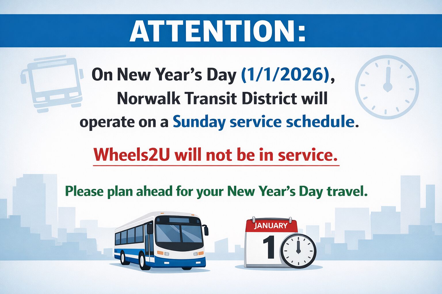 Route 2 - Service Detour - Lowe st closed at Flax Hill Rd From 11/03/25 to 11/07/2025 -- No Service On Lowe St from Bouton St to Flax Hill Rd - Detour Lowe St to Bouton St to Cliff St to Soundview Ave to Flax Hill Rd to Taylor Ave Inbound and Outbound.